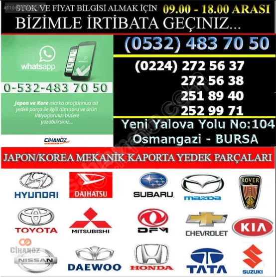 CİHANÖZ OTOMOTİV BURSA JAPON / KOREA MEKANİK-KAPORTA OTO YEDEK PARÇA