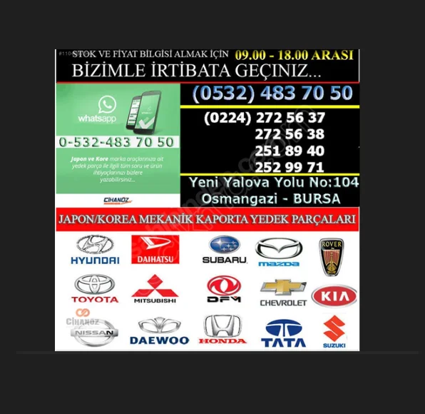 CİHANÖZ OTOMOTİV BURSA JAPON / KOREA MEKANİK-KAPORTA OTO YEDEK PARÇA
